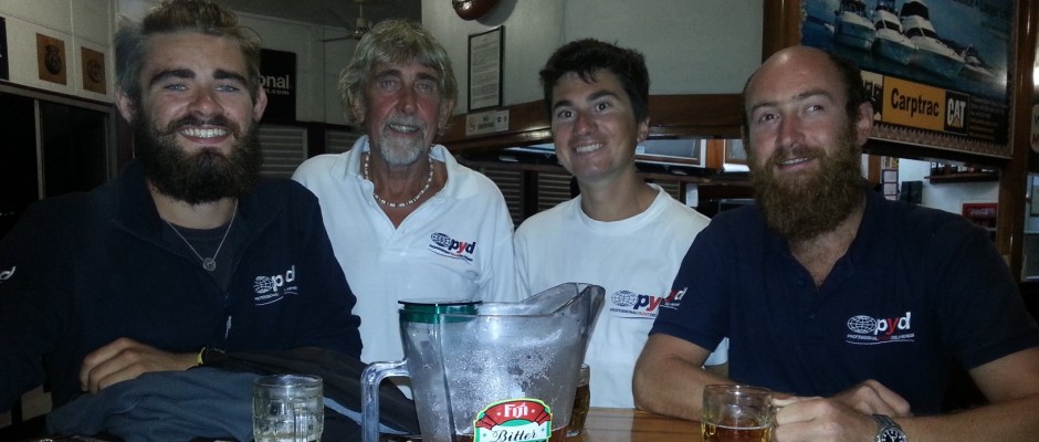 A 4 man PYD crew, delivering a yacht from the West Indies to Freemantle, Western Australia, have just arrived in Suve, Fiji. They have covered 8,000nm of the passage and have 5,000nm to run.
